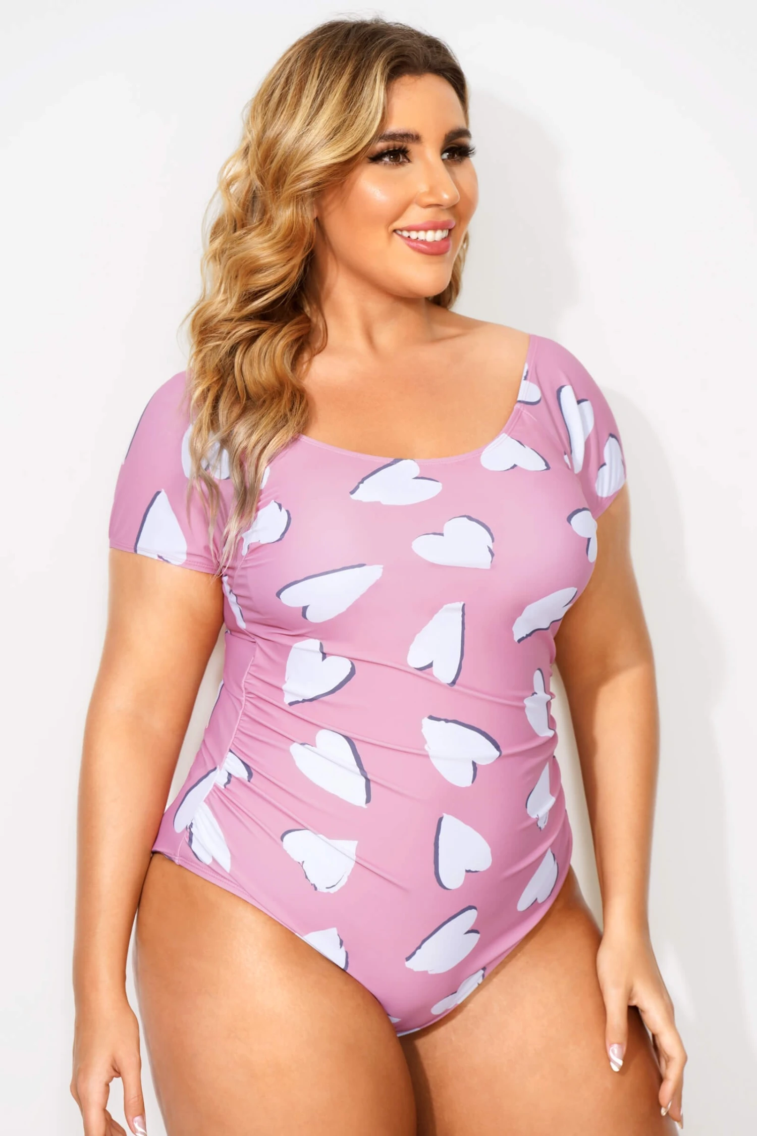 Heart Printed Round Neck One Piece Swimsuit -Bikini By Muse b deop090006 3