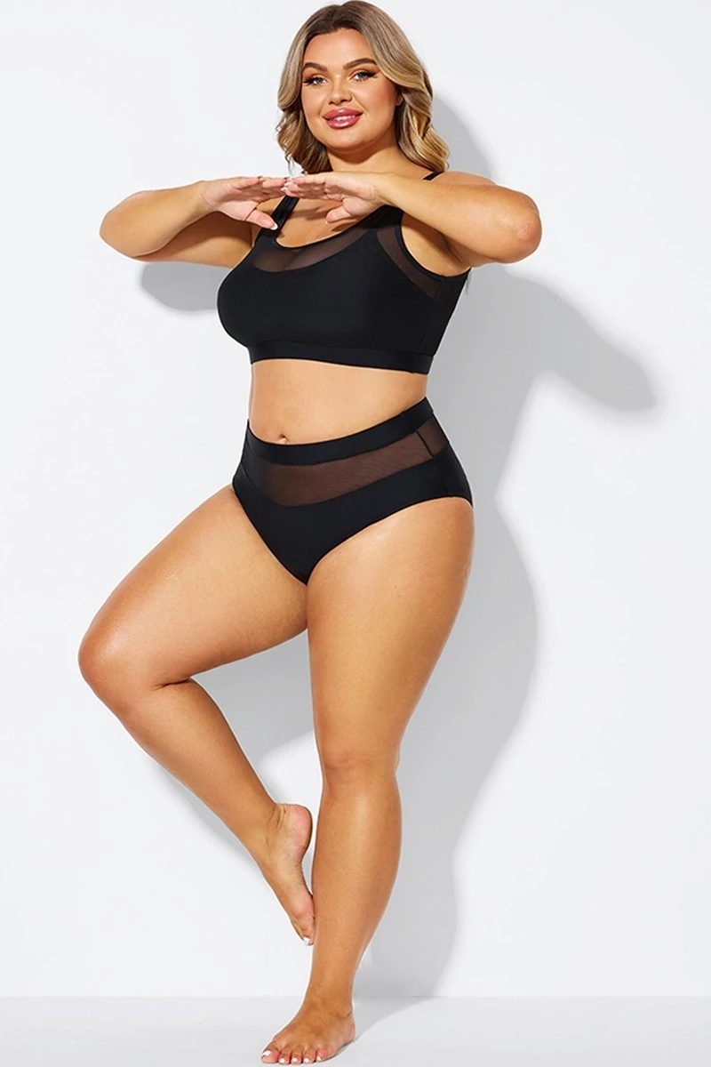 Black Mesh High Waist Bikini Bottom