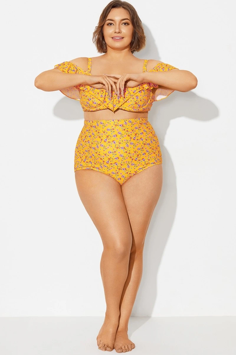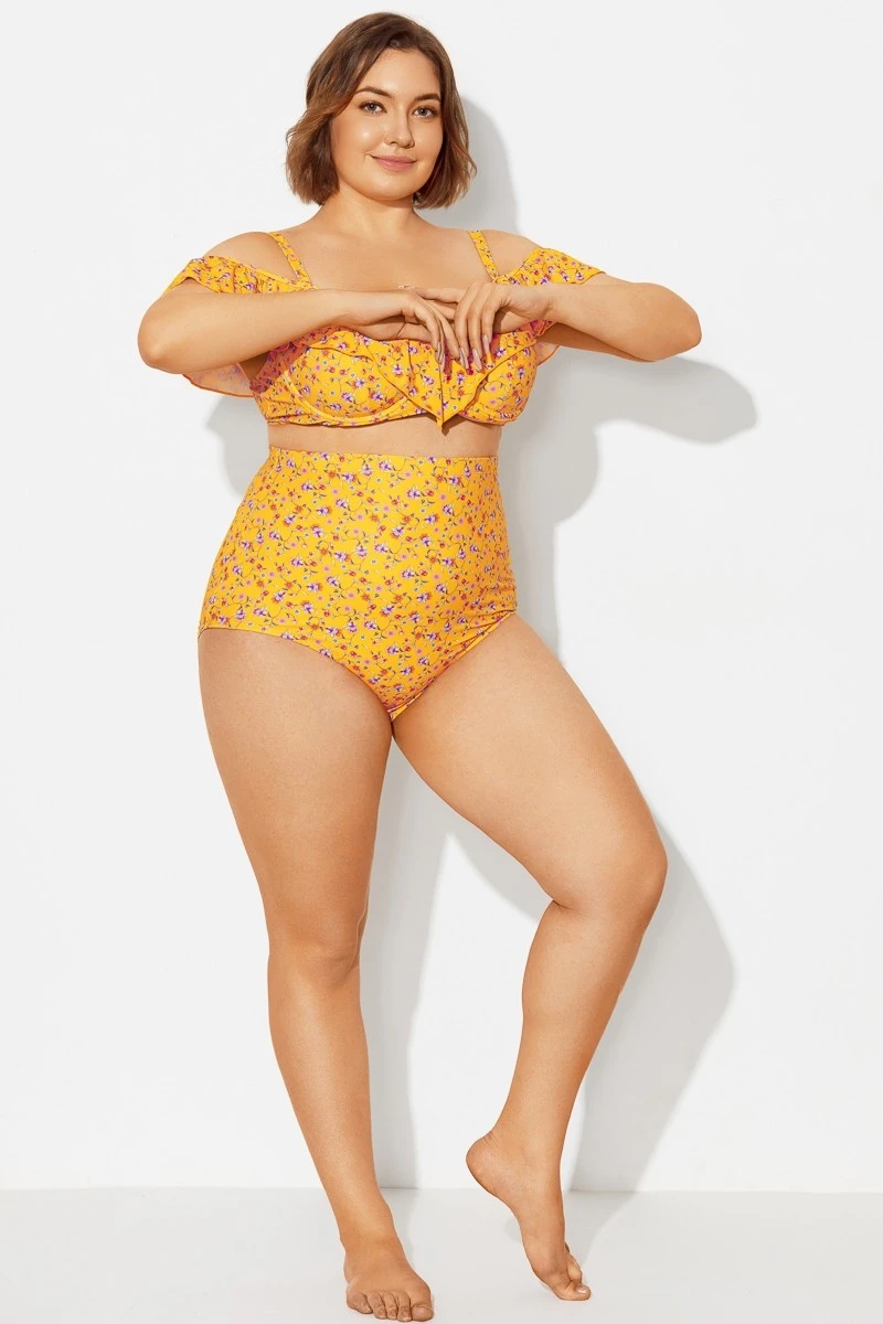Yellow Floral High Waist Brief For Lady -Bikini By Muse b debt002024 3